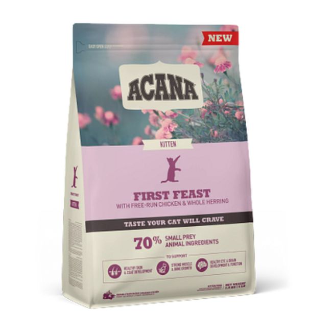 Il miglior inizio per il tuo gattino, grazie a questo alimento ricco di ingredienti animali nelle proporzioni della preda intera. Formulato per supportare la crescita e lo sviluppo dei gattini, ACANA First Feast è ricco di pollo e aringa, tutti nelle proporzioni della preda intera, con carne, interiora, cartilagine e ossa. Tutti i nutrienti necessari per crescere forte e in salute e un gusto irresistibile, che il tuo gattino amerà.
