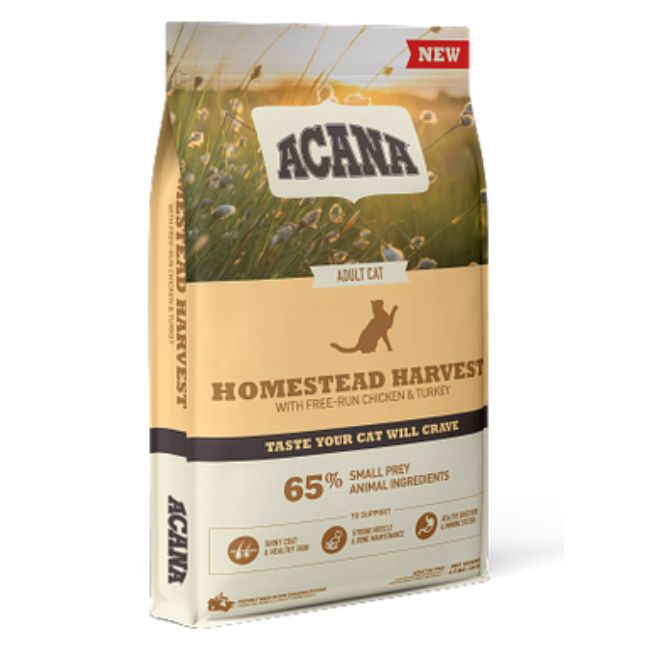 Assicura al tuo piccolo felino un’alimentazione ricca di ingredienti animali di alta qualità. ACANA Homestead Harvest è ricco di pollo, tacchino e anatra, tutti nelle proporzioni della preda intera, con carne, interiora e cartilagine. La ricetta ideale per offrire al tuo gatto un alimento naturale e dal gusto irresistibile e mantenerlo forte e in salute.
