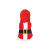 Cappottino per cani che richiama il famoso cappotto rosso e bianco di Babbo Natale con cintura nera e fibbia gialla.