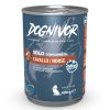 Dognivor è una linea di alimenti umidi completi a base di carne come unica fonte di proteine, un’unica fonte vegetale ed un’unica fonte di carboidrati. La qualità del prodotto è ulteriormente potenziata dalla preziosa integrazione con il complesso mix 5 salute, studiato per arricchire il suo benessere apportando: olio di lino (fonte di omega 3 e 6), cuticola di psyllium (fonte di fibra solubile), selenio (proprietà antiossidanti), ossido di zinco, rosmarino.