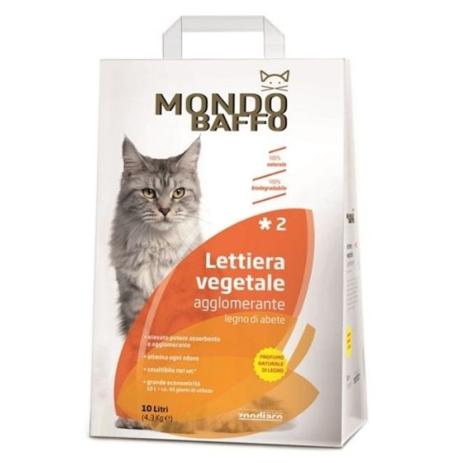 Mondo Baffo Vegetale Agglomerante 2 è prodotta in legno naturale di abete utilizzando legname proveniente da foreste gestite in modo sostenibile. Viene realizzata riducendo il legno in trucioli grossolani, che vengono poi macinati e setacciati ottenendo parti più piccole, moltiplicando così la capacità di ritenzione idrica naturale del legno. Estremamente assorbente e a basso contenuto di polvere, elimina i cattivi odori e profuma naturalmente di legno. Quando entrano in contatto con l’urina, le fibre naturali formano delle palline che possono essere smaltite con moderazione in dimensioni di una noce nel WC domestico (max. 2 alla volta). Quantità maggiori possono essere gestite come rifiuti biodegradabili o rifiuti domestici in osservanza alle norme di smaltimento locali.