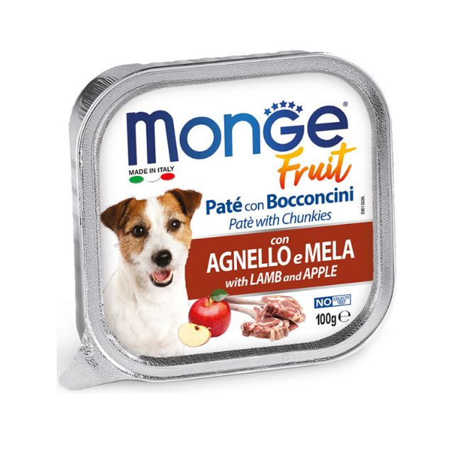 Il delizioso paté con bocconcini di agnello fresco e con frutta, fonte naturale di vitamine e minerali, è un alimento completo e digeribile formulato per supportare ogni giorno il benessere dei cani adulti. Il morbido e gustoso paté e bocconcini è ideale per cani di piccola taglia e come premio per i cani più grandi. Monge Fruit è Made in Italy, No Cruelty Test e senza coloranti e conservanti.