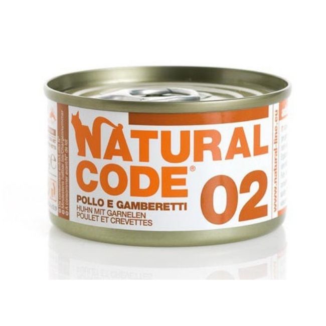 A base di carne di pollo, caratterizzata da proteine di ottima qualità, a cui vengono miscelati i gamberetti, che oltre ad essere una buona fonte proteica forniscono al gatto parte dei Sali minerali necessari per un ottimale sviluppo scheletrico. Viene inoltre aggiunta una piccola quantità di riso, che apporta carboidrati facilmente digeribili.