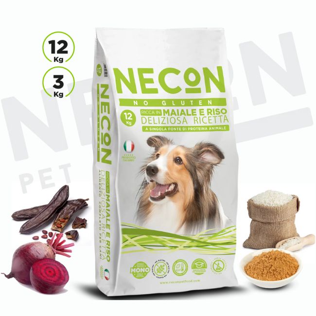 Necon deliziosa ricetta ricca in maiale e riso è la dieta di mantenimentoNo Gluten adatta alla maggior parte dei soggetti, l’uso della proteina di suino come fonte principale lo rende particolarmente appetibile. La doppia lavorazione con finitura a freddo mantiene inalterate le caratteristiche organolettiche degli ingredienti salvaguardandone i valori nutrizionali.
