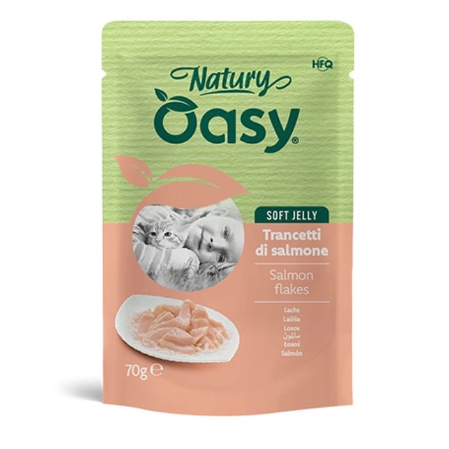 Squisito salmone, senza aromatizzanti, coloranti né conservanti artificiali aggiunti, in gelatina naturale ancora più morbida per una consistenza irresistibile e succulenta, in pratiche buste da 70 g.