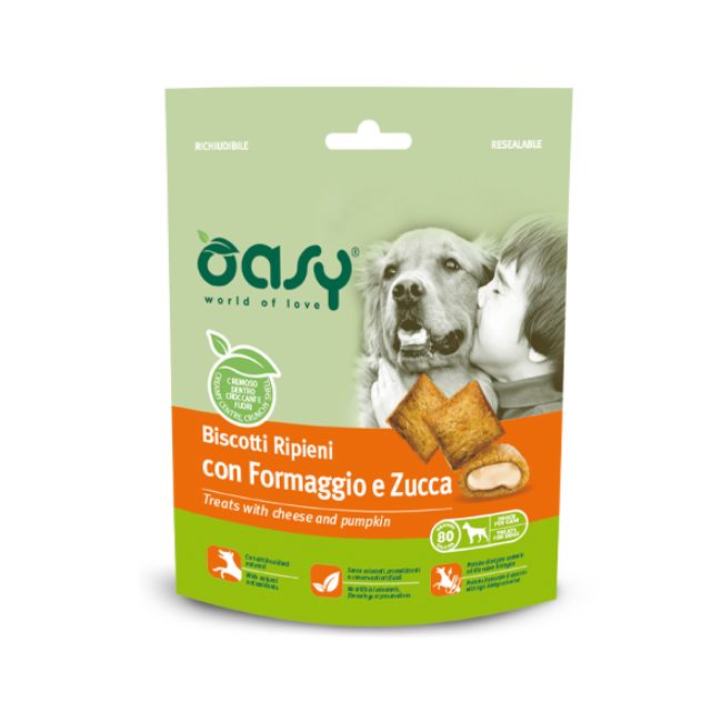 Croccanti biscotti dal cuore cremoso con antiossidanti naturali per favorire il benessere del tuo cane adulto: uno snack sano e genuino per deliziarlo in ogni occasione.