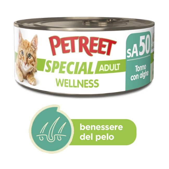 Tutte le varianti della linea Wellness rappresentano alimenti funzionali completi, realizzati con pregiato tonno di alta qualità e materie prime 100% naturali, senza coloranti né conservanti aggiunti. Grazie alla loro innovativa formula, ognuno di questi alimenti è stato studiato per mantenere il fisiologico benessere del tuo gatto.