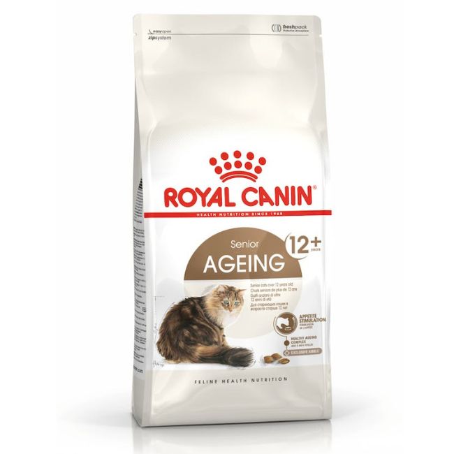 Alimento completo ed equilibrato per gatti anziani di oltre 12 anni di età. l progressivo declino del senso del gusto e dell’olfatto, in alcuni gatti anziani, può indurre una riduzione della quantità di cibo ingerito. Ageing 12+ contribuisce a stimolare l’appetito dei gatti anziani grazie a crocchette molto appetibili, con una doppia consistenza, facili da masticare.