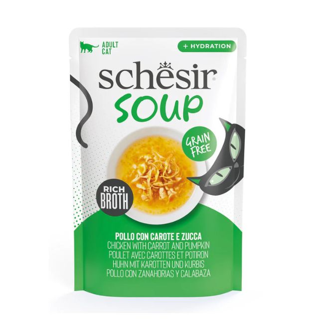 Composizione: pollo 27,5%, zucca 6%, carote 6%, amido di tapioca 1,7%, estratto di lievito 1,3%