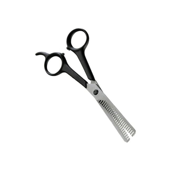 Queste resistenti forbici da sfoltimento in metallo permettono di tagliare e sfoltire facilmente il pelo animale. Le forbici sono stabili e maneggevoli, grazie alla forma degli anelli le dita che permette una guida precisa della lama della forbice seghettata su entrambi i lati anche con i peli arruffati. La lunghezza del taglio è di circa 6 cm.